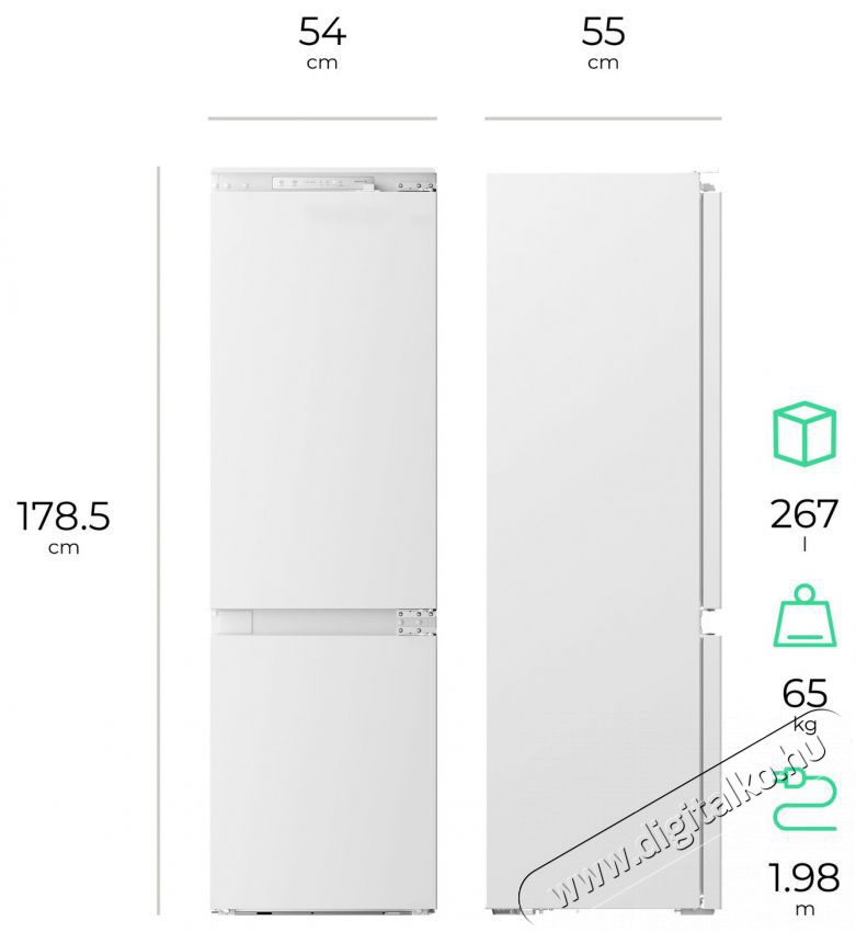 | Hűtőszekrény mélysége | 55 cm |