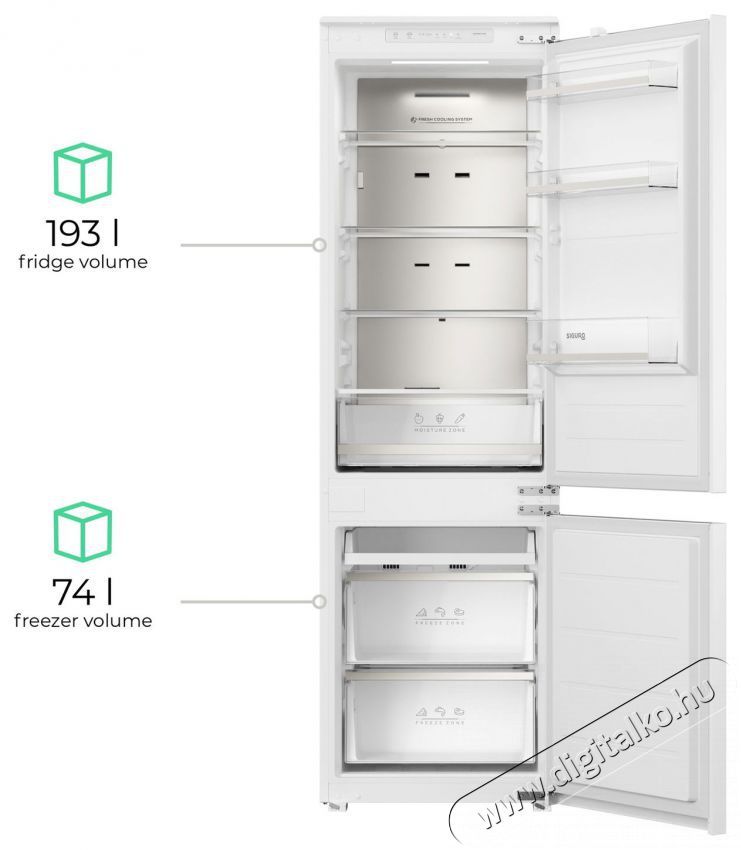 | Hűtőszekrény térfogata (hűtőtér) | 193 l |
