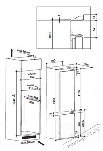 - Különleges méretű beépíthető kombi hűtő.