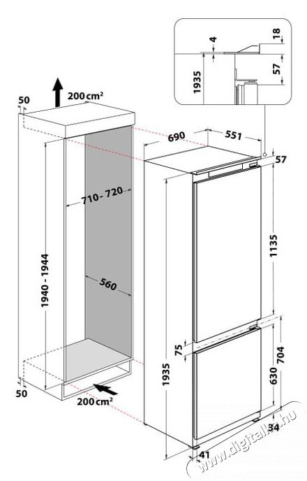 Automatikus leolvasztás (hűtőszekrény) Igen