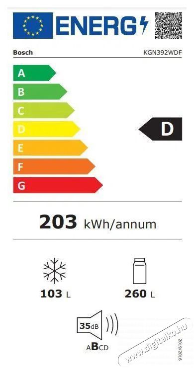 | Hűtőszekrény teljes hasznos térfogata | 363 l |