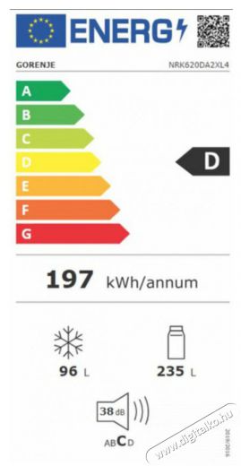 | Hűtőszekrény éves energiafogyasztása | 197 kWh/annum |