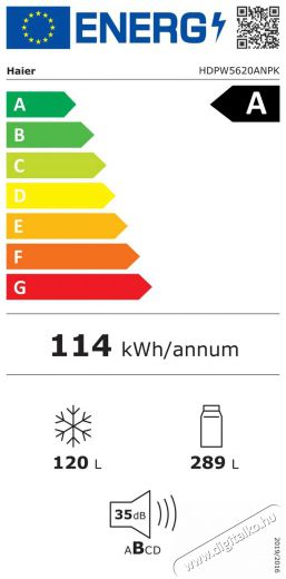 | Hűtőszekrény éves energiafogyasztása | 114 kWh/annum |