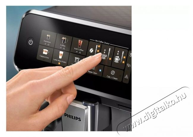 A színes ikonokkal ellátott, modern érintőképernyős kijelzőnek köszönhetően könnyedén kiválaszthatja kedvenc italait. Állítsa be kávéját a My Coffee Choice funkcióval a saját ízlése szerint: válassza ki a kávé kívánt erősségét, hosszát és tejhabszintjét, ahogy Önnek tetszik.