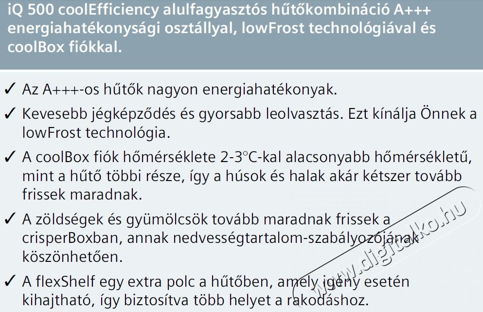 - Külön hőmérsékletvezérlés a hűtő- és fagyasztótérre
