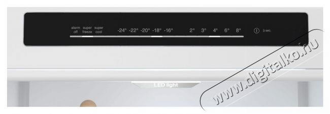 | Hűtőszekrény tulajdonságai | Állítható polcok, Kijelző, LED világítás, Nyitott hűtőajtó jelzés |