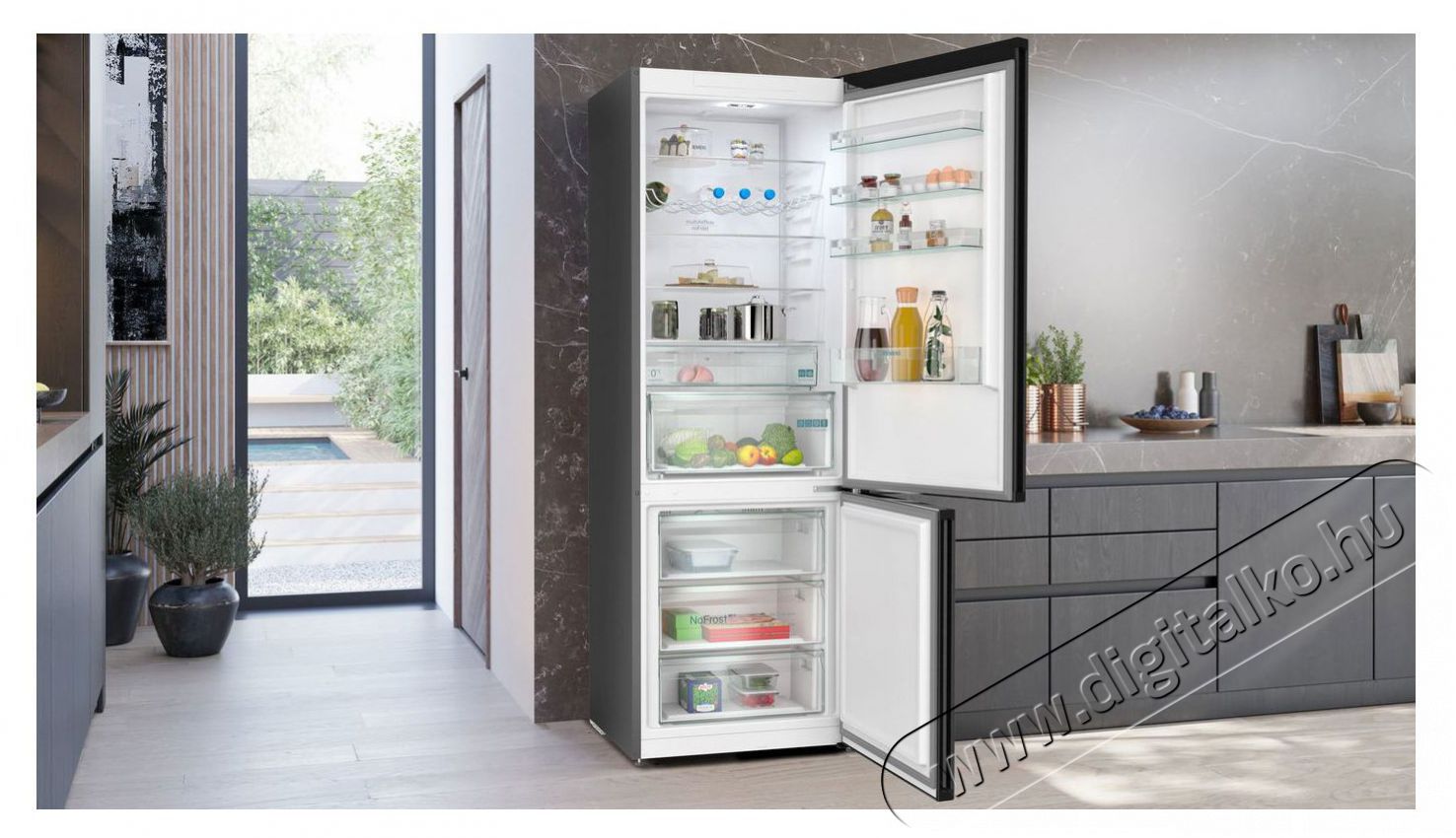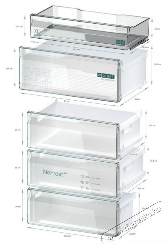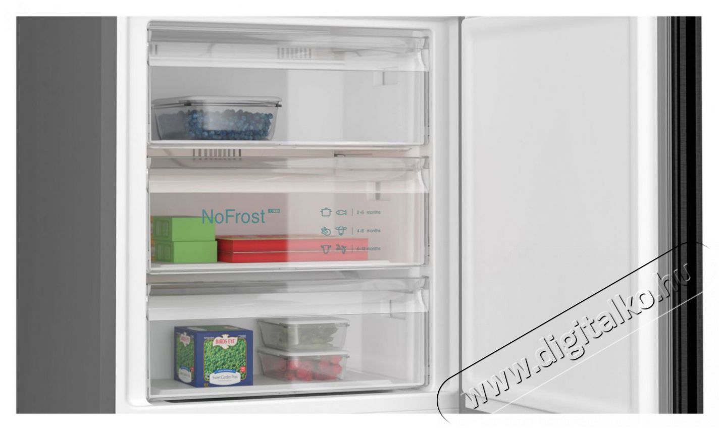 | Hűtőszekrény tulajdonságai | Állítható polcok, Kijelző, LED világítás, Nyitott hűtőajtó jelzés |