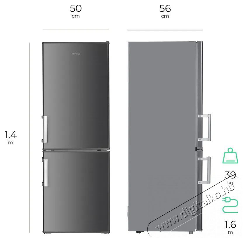 Siguro BF-J140S Arctic hűtőszekrény Kompakt, csendes, gazdaságos és nagyon praktikus, a Siguro BF-J140S Arctic hűtőszekrény kiváló választás kisebb lakásokba vagy nyaralókba. Kis mérete és 173 literes össztérfogata ellenére jól megtervezett belső teret és rengeteg modern funkciót kínál, amelyeket még a legigényesebb felhasználók is értékelni fognak. Emellett kiváló minőségű, csendes működésű kompresszorral is büszkélkedhet, így nem fog zavarni a mindennapi tevékenységeidben. Emellett LowFrost technológiával, energiatakarékos LED-világítással, a fagyasztóban található pizzafiókkal és a könnyű tisztítás érdekében levehető tömítéssel is rendelkezik. Végül, de nem utolsósorban, ez a kompakt, alulfagyasztós hűtőszekrény tetszetős dizájnjával is gyönyörködtet, és tökéletesen illeszkedik bármely modern vagy klasszikusan berendezett konyhába.
