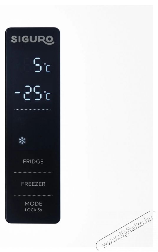 A Siguro BF-O120W Ideal hűtőszekrény egy igazi energiatakarékos készülékA hűtőszekrény a C energiaosztályba tartozik, és évente 159 kWh-t fogyaszt. Éves fogyasztása akár 50 kWh-val kevesebb, mint az E energiaosztályba tartozó hűtőszekrényeké, és akár 100 kWh-val kevesebb, mint a D energiaosztályba tartozó hűtőszekrényeké. A hőmérséklet-szabályozás ebben az esetben az ajtón lévő kijelzővel ellátott érintőképernyő segítségével történik, amely lehetővé teszi a hőmérséklet független beállítását a hűtő (2-8 °C) és a fagyasztó (-22-14 °C) rekeszekben. A kijelző ilyenkor a beállított hőmérsékleteket mutatja, és az ajtó kinyitásakor két percig világít, majd kialszik. Újbóli bekapcsolásához nyomd meg bármelyik gombot. A gyorsfagyasztás funkció mellett a kezelőpanel segítségével aktiválható a Holiday (hűtőszekrény hőmérséklete 17 °C) vagy az ECO üzemmód, amelyben a hűtőszekrény hőmérséklete automatikusan 5 °C-ra, a fagyasztó hőmérséklete pedig -18 °C-ra áll be, és nem módosítható.