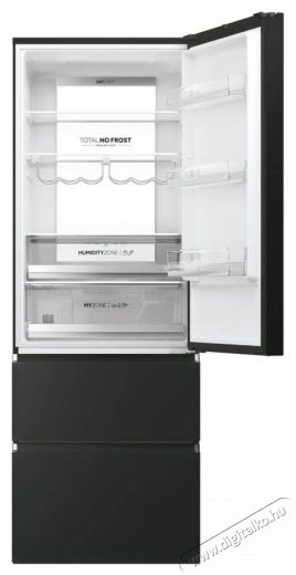 | Hűtőszekrény tulajdonságai | Gyerekzár, Kijelző, LED világítás, Nyaralási mód, Nyitott hűtőajtó jelzés, Smart funkciók |