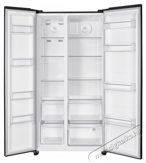 59.5 cm-es csökkentett mélységA hagyományos side by side hűtőkhöz képest kissebb a mélysége ez által könnyebb elhelyezni kissebb férőhelyes konyhákban is, valamint a nem haladja meg a standard 60 cm-es konyhabútor méretet ez által egységes kinézetet kölcsönöz a konyhának.