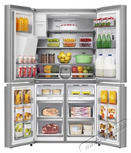 A HISENSE RF793N4SAFE teljes térfogata 584 liter, ami elegendő helyet biztosít minden élelmiszer tárolására, még egy nagy család számára is. A Side-By-Side hűtő okosan megtervezett belső kialakítással rendelkezik, így minden ételnek és italnak meglesz a saját helye. A HISENSE RQ760N4SASE ráadásul remekül néz ki, így funkcionalitása mellett minden háztartás díszévé válik.