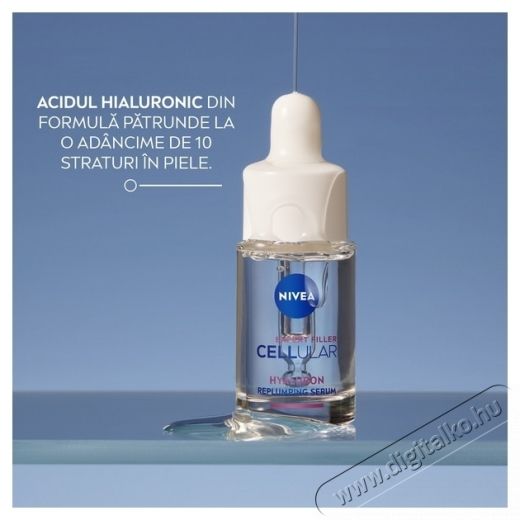 Bőre megérdemli, hogy élvezze a napi ápolást és a megújult megjelenést. A NIVEA® Cellular Expert Filler Serum hialuronsavval egy fejlett ránctalanító megoldás a hidratált, sima és fiatalosabb bőrért. TISZTA MIKRO-HIALURONSAVVAL dúsított, 40-szer kisebb molekulájának köszönhetően 10 réteg mélységig1 behatol a bőrbe a ráncfeltöltő hatás érdekében. A hialuronsav arról ismert, hogy képes megtartani a nedvességet a bőrben, és láthatóan újrasűríti azt. 40-szer kisebb molekulájának köszönhetően NIVEA® Cellular Expert Filler szérum hialuronsavval Egy hét elteltével a bőr rugalmasabbá válik, a ráncok csökkennek. Bőrgyógyászatilag jóváhagyott, gyengéd a bőrhöz és minden bőrtípusra hatékony, beleértve az érzékeny bőrt is. A hatékonyságot független intézmények igazolták.