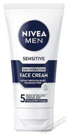 Nivea Sensitive arckrém, 75mlA Nivea Men Sensitive hidratáló krém kifejezetten a férfiak és igényeik számára készült. Gyorsan beszívódik a bőrbe, szakállbarát és nem ragad. A 0% alkoholt (etil-alkohol nélkül) és E-vitamint tartalmazó formula enyhíti az irritációkat, 24 órán keresztül intenzíven hidratálja a bőrt és erősíti annak természetes védőgátját. Válassza a Nivea Men Sensitive-t az egészséges és ápolt bőrért. Bőrkompatibilitás dermatológiailag tesztelve. Az egészséges és ápolt arcbőrért.