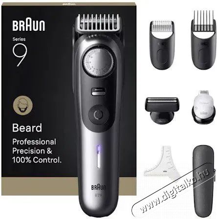 Braun Series 9 BT9520 szakállvágó Olyan megjelenésre vágysz, ahol a szakáll hossza és formája pontosan az ízlésednek megfelelő? Akkor a Braun Series 9 BT9520 szakállvágó neked való! A készülék 0,5–20 mm között állítható vágáshosszúságot kínál, és rendkívül éles, önélező pengékkel van felszerelve. Az intuitív nyomógombos vezérlés és a Precision Wheel tekerőgomb 52 hosszbeállítással minden felhasználónak megfelel. A Precision Lock zárolja az általad beállított értéket, így kizárt a véletlen elállítás. Az Ultra Sharp Blade technológia még a nehezen megfogható szálakat is hatékonyan vágja, így a végeredmény egyenletes és precíz lesz. A trimmelő AutoSense technológiája lehetővé teszi, hogy automatikusan alkalmazkodjon a testszőrzeted sűrűségéhez, és növelje vagy csökkentse a készülék teljesítményét a hatékony trimmelés érdekében. A PowerBoost üzemmód pedig segít megbirkózni a legsűrűbb szakállal is. A Braun trimmelő 100%-ban vízálló. Kényelmesen használhatod akár a zuhany alatt is, anélkül, hogy károsodna. Az ergonomikusan kialakított csúszásmentes markolat tökéletesen illeszkedik a kézbe. A vezeték nélküli működésről nagy teljesítményű akkumulátor gondoskodik, amely akár 180 percnyi használatot is lehetővé tesz egyetlen töltéssel. Élvezd az otthoni precíz szakállformázás élményét a Braun Series 9 BT9520 szakállvágóval!