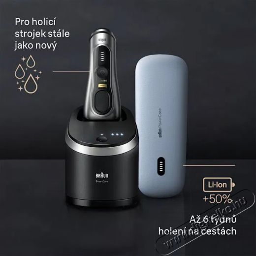 Pontos borotválkozás éveken át A Braun Series 9 PRO+ 9577cc borotvát Németországban gyártják, és hogy mindig csúcsformában maradjon, a csomag része a SmartCare Center 6 az 1-ben intelligens tisztítóállomás is. Csak egy gombnyomás, és borotvád újra olyan lesz, mint új korában. A beépített Li-Ion akkumulátor 60 perces borotválkozáshoz elegendő energiát biztosít a Braun borotvának. A 100%-ban vízálló kialakításának köszönhetően a Braun Series 9 PRO+ borotva bárhol használható a fürdőszobában. A csomag tartalmaz egy hordozható PowerCase töltőtokot, amely 50%-kal növeli a Braun borotva akkumulátorának üzemidejét. Így akár 90 percig is borotválkozhatsz.