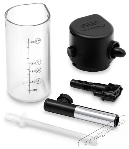 Öntsd a kívánt mennyiségű tejet a kancsóba, majd nyomd meg a MyLatte gombot a kezelőfelületen. A gép pontosan érzékeli a tej mennyiségét, és az összes tejet felhasználja, így nem kell a tejet a hűtőszekrényben tárolnod.