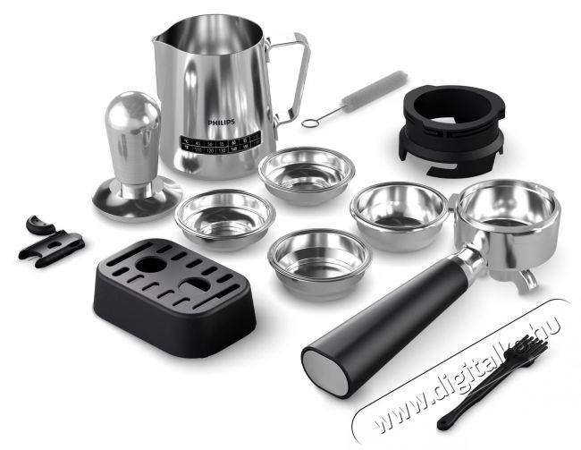 58 mm-es rozsdamentes acél portafilter kávézó minőségű eszpresszóhozÉlvezze az intenzív kávé és az aromás krém minden csészében a professzionális minőségű, 58 mm-es rozsdamentes acél portafilterrel és az egy- és kétfalú szűrőkkel. A portafilter mérete lehetővé teszi, hogy gyönyörű, aranybarna eszpresszót készítsen, sűrű és aromás krémmel, miközben a víz egyenletesebb eloszlása biztosítja a kávébab teljesebb kivonását. Ezenkívül nagyobb mennyiségű őrölt kávét is felhasználhat a gazdagabb és erőteljesebb íz érdekében.