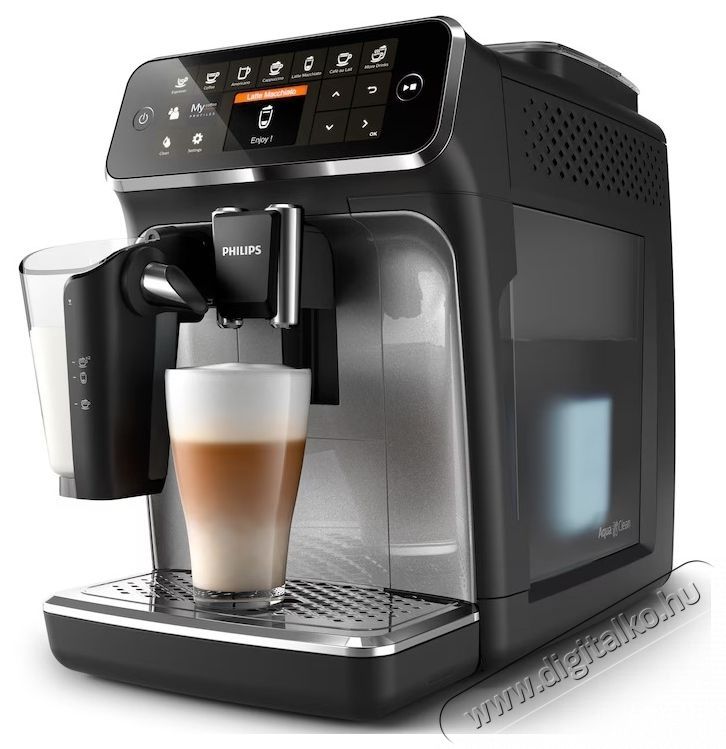 Egyszerűen, egyetlen gombnyomással készíthet aromás kávéfajtákat, mint például eszpresszó, kávé, cappuccino és latte macchiato. A LatteGo finom és krémes habot ad a tejfajtákhoz, könnyen konfigurálható, és mindössze 15 másodperc alatt tisztítható*.
