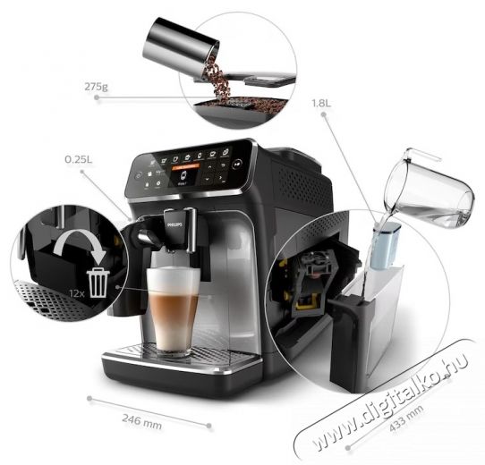 | Tulajdonság | Kivehető csepptálca Energiatakarékos rendszer Kivehető víztartály Removable milk tank Aromaintenzitás beállítása |