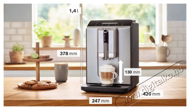 | Általános felszereltség | Beépített kávédaráló, Kijelző, Víztartály |