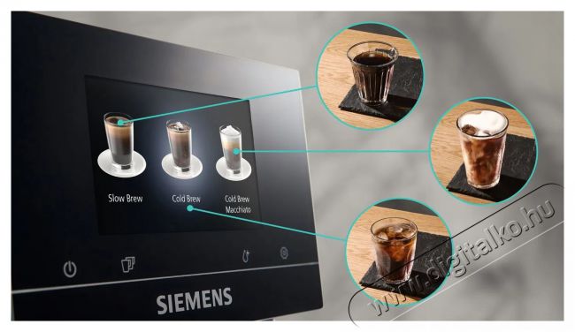 A jól kihasználható SIEMENS Automata kávéfőző frenetikus kávét készít, amit egyszerű elkészíteni, és tökéletes ízvilágot kínál. Erről többek között az italhőmérséklet-beállító funkció gondoskodik, amely a tökéletes íz és harmónia eléréséhez a legoptimálisabb hőmérsékletet választja ki a kávé elkészítésekor. Tejjel készült kávék, többek között Espresso Macchiato, Latte Macchiato, Caffe latte, Cappuccino és Flat White elkészítése jelent majd gondot. A csészemelegítővel felmelegítheted a csészét, mielőtt lefőzöd a kávét, ami így tovább marad forró. A készüléken lévő, integrált tejtömlőnek hála a tejes kávékülönlegességek elkészítése gyerekjáték lesz. Az elkészítéshez egyszerűen csak tölts vizet a tartályba, csatlakoztasd a csövet a tejtartályhoz, és válaszd ki a kívánt italt. Tökéletes és gazdag hab került az eszpresszódra, amelyet a készülék a kávéd elkészülése után a tejtömlőből adagol a kávé tetejére. A kávéfőző innovatív technológiája lehetővé teszi, hogy sűrű és krémes tejhabos kávét készíts forró és hideg változatban egyaránt.