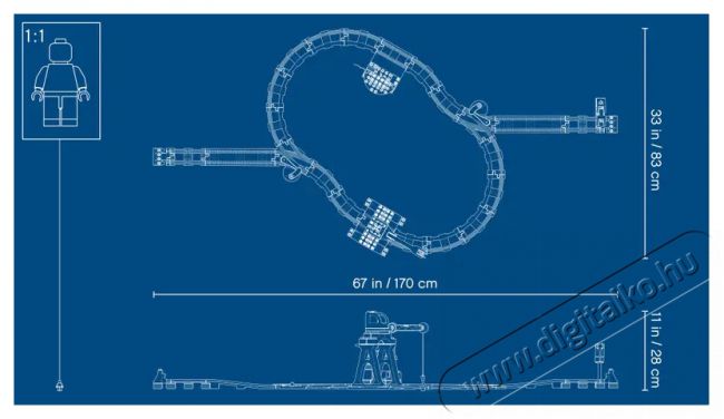 - A tehervonat és a teherkocsik méretei: több mint 10 cm magas, 47 cm hosszú és 8 cm széles.