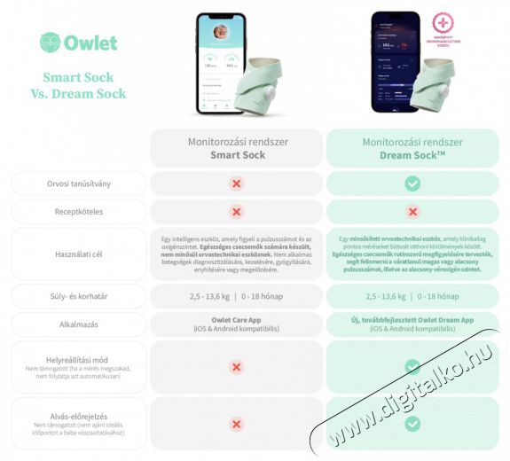 Okos zokni egészségügyi tanúsítvánnyal Szeretné szemmel tartani a babáját, amíg alszik? Az okos Owlet Dream Sock segítségével maximális nyugalmat élvezhet. Ez egy egészségügyi tanúsítvánnyal rendelkező zokni, amely a baba lábára tekerve figyeli pulzusát, véroxigénszintjét és alvási trendjeit. Minden adatot valós időben figyel, és jelent a bázisnak. Ezeket az értékeket közvetlenül a mobiltelefonján követheti a hasznos Dream alkalmazás segítségével. Ezen keresztül irányíthatja is egyben. A bázis és az alkalmazás is azonnal értesíti Önt, ha valami szokatlan történik. Az intelligens Owlet Dream Sock fejlett technológiával biztonságot nyújt a baba számára, de egyben nyugalmat Önnek, mint szülőnek. A zokni 0 és 18 hónapos kor közötti, 2,5 és 13,6 kg közötti egészséges csecsemők számára alkalmas.