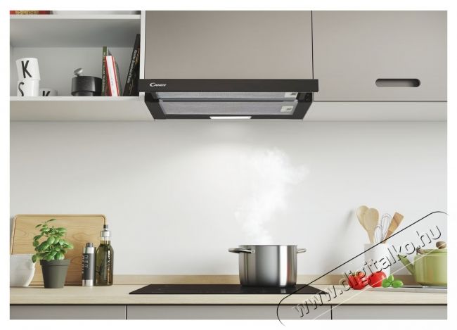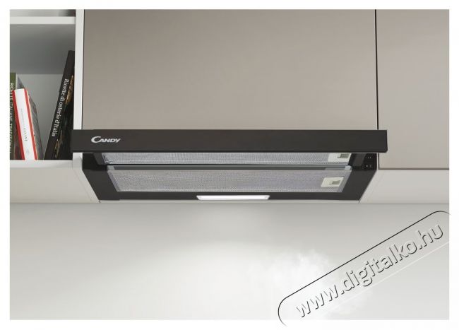 A Candy beépített páraelszívója CBT60RBG bármilyen konyhába illeszkedik, és bármilyen típusú bútorba beépíthető.