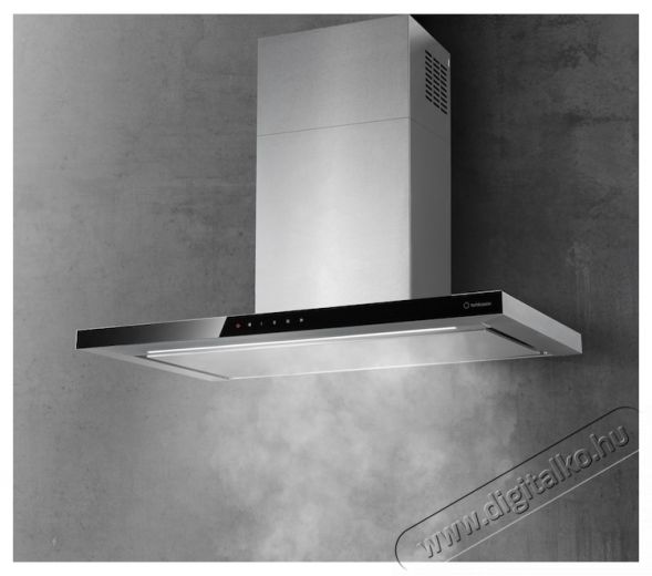 Turbionaire Elyn 90 rozsdamentes acélból készült fali páraelszívó elegáns, egyenes vonalú kialakításának, a gőz- és szagelvezetés nagy hatékonyságának, valamint a főzési folyamatból eredő zsírvisszatartásnak köszönhetően figyelemre méltó jelenléte lehet a főzőhelyen.