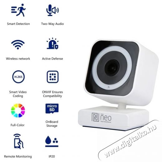 IMMAX NEO LITE Smart Security beltéri LITTLE CUBE, WiFi 2,4 GHz, 3 MP, ONVIFAz IMMAX NEO LITE Smart Security LITTLE CUBE beltéri IP kamera Wi-Fi segítségével azonnali betekintést nyújt az otthonodban történő eseményekbe. Amikor csak szükséges, készíthetsz felvételt vagy fotókat a megfigyelt területről. Az alkalmazás beállításaiban kiválaszthatod például, hogy ha a kamera mozgást érzékel, riasztás érkezzen az okostelefonodra vagy tabletedre, így azonnalértesülsz a váratlan látogatókról. A kamera részét képezi egy kiváló minőségű hangszóró és mikrofon, amely kétirányú kommunikációt tesz lehetővé családtagjaiddal vagy háziállatokkal. A kamera továbbá mozgásérzékelést, nappali és éjszakai látást, valamint kiváló képminőséget kínál.