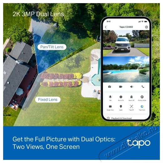 TP-Link Tapo C246D IP kamera - kulcsfontosságú jellemzők - Ez a hasznos TP-Link wifis kamera képadatokat gyűjt és továbbít IP protokollon keresztül egy számítógépes hálózaton belül