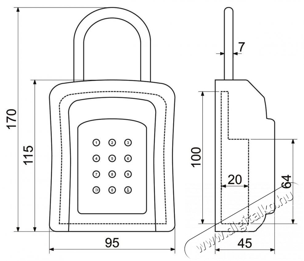 - Külső méretek (Sz × Ma × M): 95 x 170 x 45 mm