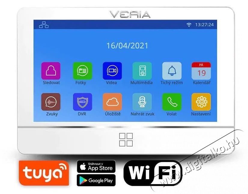 A VERIA 8277B-W magas képminőséget és élénk színeket kínál. Az érintős ikonoknak köszönhetően a lehető legkönnyebben kezelhető, és a többnyelvű menü is használható. A VERIA 8277B-W videótelefon beépített DVR funkcióval rendelkezik, SD memóriakártyára történő rögzítéssel. A videótelefon további két kamerával (AHD, CVBS, TVI, CVI) bővíthető. AzintegráltWi-Fi-nek köszönhetően lehetőség van távolról kommunikálni az ajtónál álló látogatóval, vagy kinyitni az ajtót vagy a kaput. Ráadásul a TUYA alkalmazással bármikor megnézheted, mi történik a bejárati ajtó előtt.