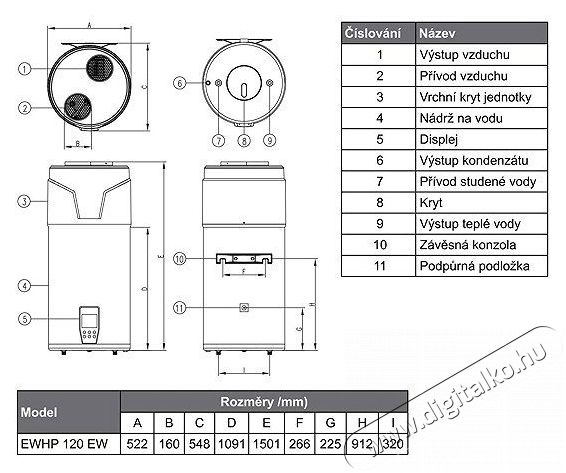 A+ energiahatékonysági osztállyal. Az ELÍZ EWHP 120 EW sikeresen helyettesíti a hagyományos elektromos vízmelegítőket, amelyekhez képest akár 70%-os üzemeltetési költségmegtakarítást is elérhet. A fehér kivitelű, dizájnos szivattyú modern benyomást kelt. A szivattyú R290 hűtőközeget és 1,5 kW-os kiegészítő elektromos fűtőbetétet használ.