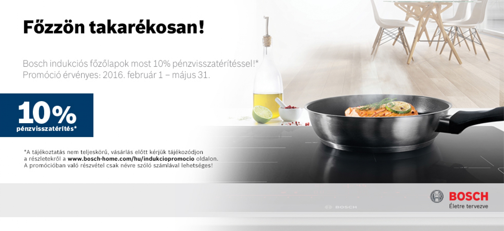 Vásároljon Bosch beépíthető sütőt és indukciós főzőlapot együtt, és 10%-ot visszakap a főzőlap vételárából!