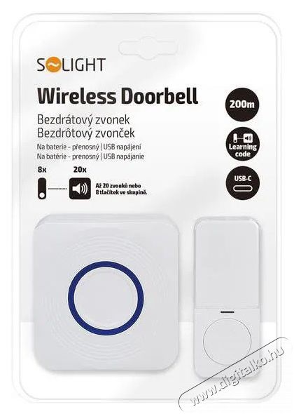 Az ismert Solight vezeték nélküli csengő, elemes + USB, 200 m, fehér, learning code termék főbb jellemzői- A tartós Solight vezeték nélküli csengő segít minden látogatónak bejelentkezni