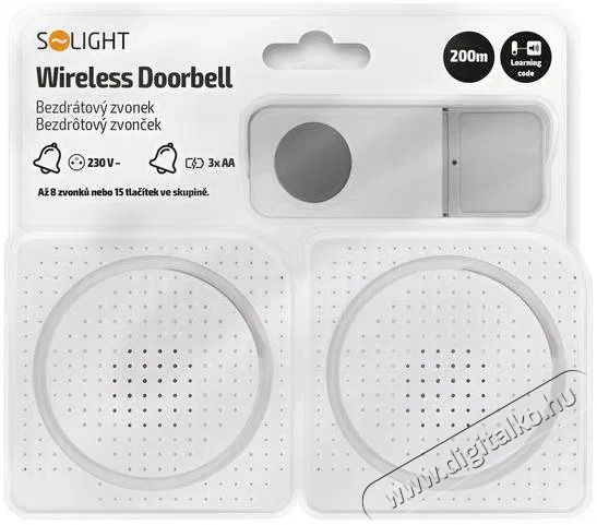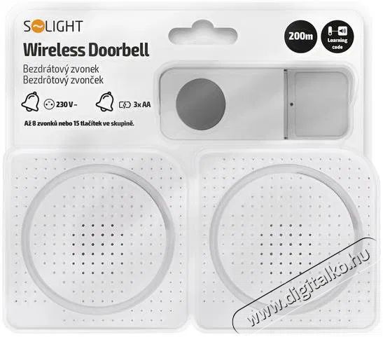 A tartós Solight vezeték nélküli, fehér, learning code, 2× vevőegységgel (hálózati aljzatba, elemes) termék lényeges jellemzői: - A minőségi Solight vezeték nélküli csengő gondoskodik a látogatók bejelentéséről