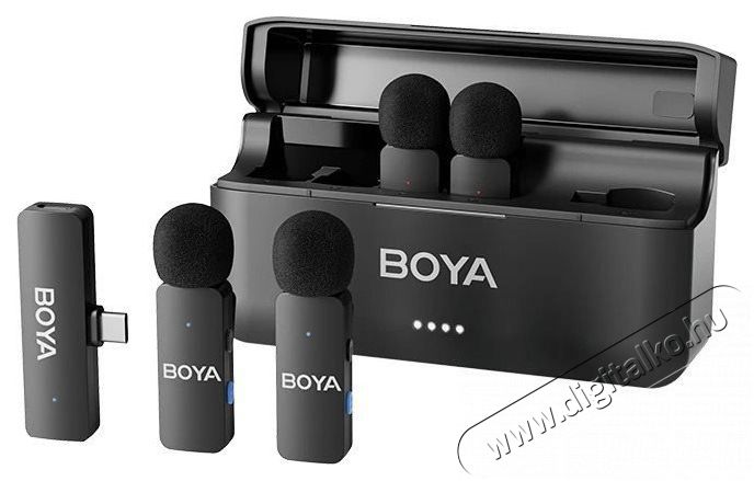 A BOYA BY-V4U egy csúcskategóriás 4 csatornás vezeték nélküli mikrofonrendszer, amely ideális vlogokhoz, interjúkhoz, podcastokhoz és élő közvetítésekhez. A mikrofonrendszer egyidejűleg akár négy lavallier mikrofon rögzítését is támogatja, és automatikus párosítást kínál, így a beállítás pillanatok alatt elvégezhető. A kettős zajszűrésnek és szélvédelemnek köszönhetően kristálytiszta hangot rögzíthetsz még zajos környezetben is, például az utcán, rendezvényeken vagy a természetben. Ráadásul a beépített omnidirekcionális kapszulának köszönhetően minden irányból vehetsz fel hangot, akár interjúkat, dokumentumfilmeket vagy dinamikus videókat készítesz. Az akár 200 méteres hatótávolsággal és az akkumulátor akár 18 órás üzemidejével (töltőtokkal) szabadon mozoghatsz és gondtalanul alkothatsz. Az USB-C csatlakozó támogatásával teljes mértékben kompatibilis a modern okostelefonokkal, tabletekkel és más USB-C porttal rendelkező eszközökkel. Legyen szó streamingről, online kurzusok rögzítéséről vagy professzionális videók készítéséről, a Boya BY-V4U vezeték nélküli mikrofonrendszer semmilyen helyzetben nem hagy cserben.