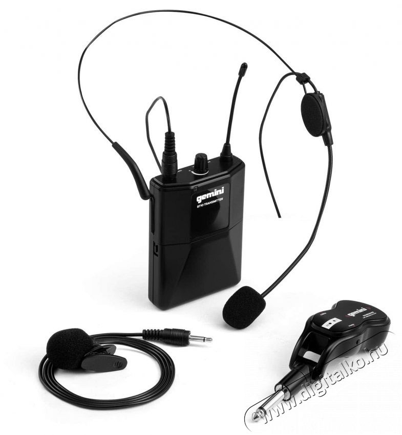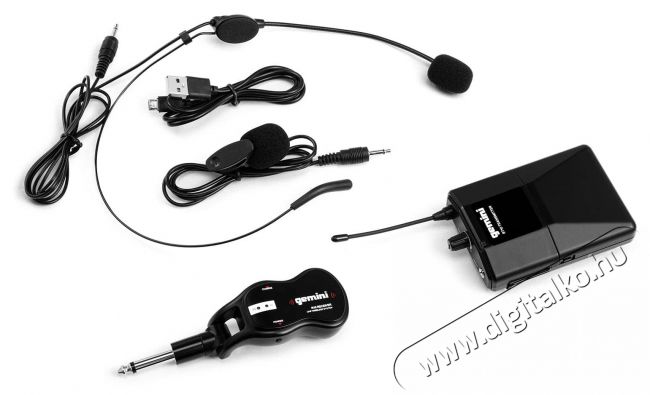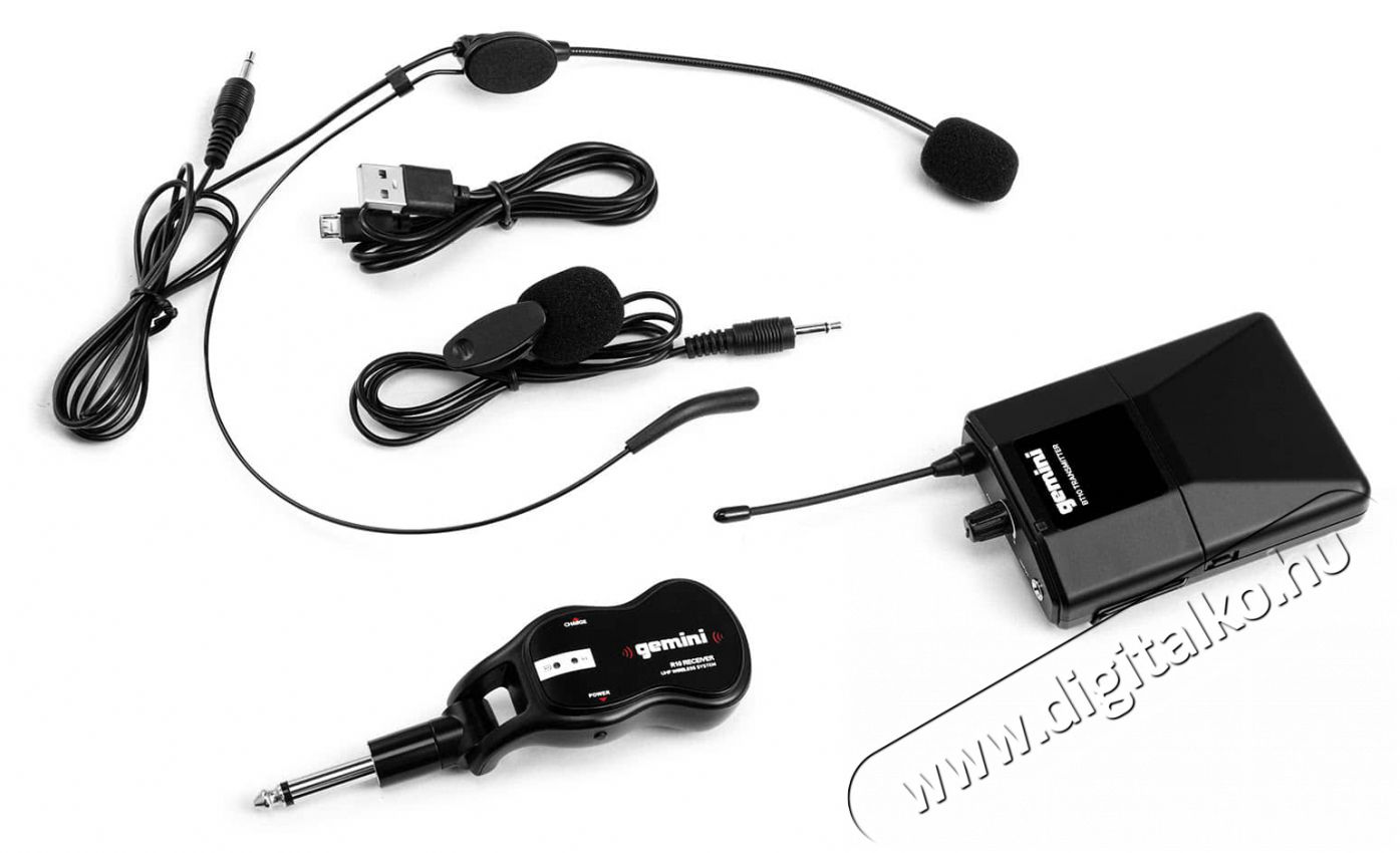 Gemini GMU-HSL100A Gemini GMU-HSL100 vezeték nélküli UHF rendszer egy csíptetős mikrofonból, egy dinamikus headset mikrofonból, egy vezeték nélküli adóból és egy 1/4" -es csatlakozású vevőből áll. Ez egy bővíthető Plug & Play rendszer, amely biztosítja, hogy a hangod 50 méteres távolságig mindig tisztán hallható legyen. Elég csak csatlakoztatnod a vevőt egy hangszóróhoz vagy más eszközhöz, és hagyni, hogy automatikusan párosodjon azzal az adóval, amelyhez korábban csatlakoztattad a headsetet vagy a csíptetős mikrofont. A Gemini GMU rendszer előnye, hogy képes egy jelet egyszerre több vevőre küldeni, és akár hat párosított eszközt is képes támogatni jel interferencia nélkül. A mellékelt USB kábel a vevő töltésére szolgál, míg az adó két AA elemmel működik.