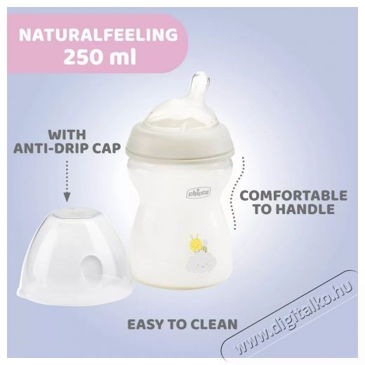 CHICCO NATURAL FEELING CUMISÜVEG JELLEMZŐI:EGYEDI ÉS INNOVATÍV DESIGN:- Az anatómiai kialakítású cumi formája rendkívül hasonló az anya melléhez, lehetővé téve a baba fejének természetes pozícióját etetés közben.