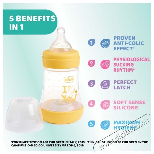 Chicco Perfect5 Anti-Colic cumisüveg, 150 ml, PP, szilikon, lassú áramlás, Unisex, 0+ hónapos korigA PERFECT 5 a biofunkcionális cumisüveg, amely természetesen megérti és alkalmazkodik minden baba szoptatási ritmusához.
