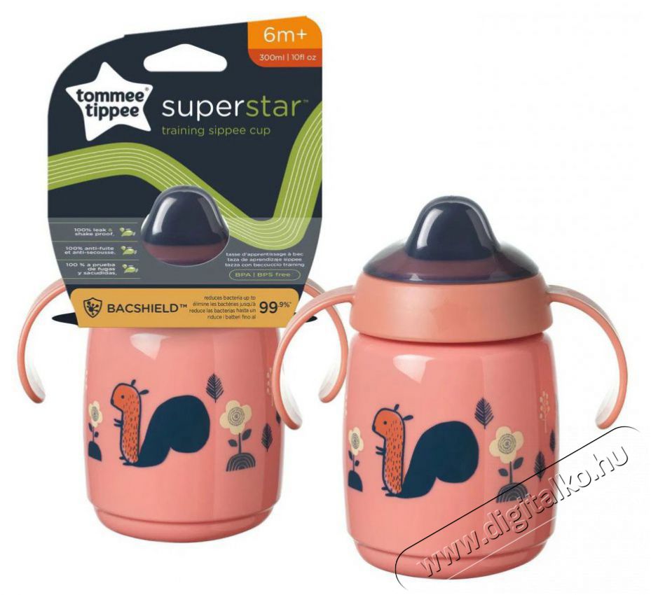 A dizájnos 300 ml űrtartalmú Tommee Tippee tanulópohár segít gyermekednek megtanulni önállóan inni. Kényelmes fogantyúkkal van felszerelve, amelyek megkönnyítik a kezelést a kicsi számára. A szivárgásmentes gyerek bögréről nem hiányzik a zárófedél sem, aminek köszönhetően felborulása esetén nem áll fenn a folyadék kifolyásának veszélye. Minden gyermek számára alkalmas 6 hónapos kortól.