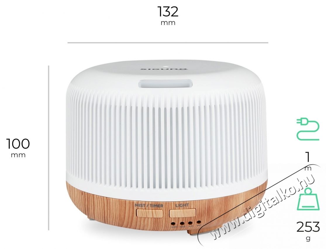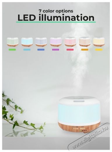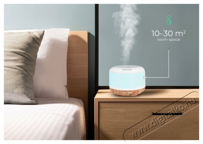 Egy aroma diffúzorral nemcsak pihentető és hangulatos légkört teremthetsz otthonodban, hanem a belső tér levegőjét is kellemesebbé és párásabbá teheted. A Siguro AD-E210LW Lulworth Skipper aroma diffúzort a kedvenc illóolajoddal kombinálhatod a nyugtató és pihentető hatásért, vagy használhatod csak vízzel párásítóként. A 300 ml-es víztartály lehetővé teszi, hogy egy 10-30 m2-es helyiségben akár 30 órán keresztül megszakítás nélkül működjön. Ennek az aroma diffúzornak az egyéb előnyei közé tartozik a gyönyörű, 7 színű háttérvilágítás, az intenzitás beállításának lehetősége, az időzítő funkció, az automatikus kikapcsolás vagy az USB-kábelen keresztül történő áramellátás. Te is értékelni fogod a halk vagy hallhatatlan működést, amelynek köszönhetően nem fog zavarni pihenés közben, és elegáns, faanyagutánzatú formatervezése bármely helyiségben kiemelkedik.