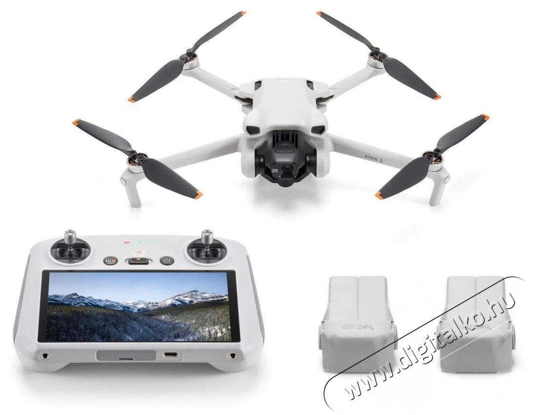 DJI Mini 3 Fly More Combo (DJI RC) (GL) Kompakt drón meghosszabbított akkumulátor-üzemidővel és intelligens funkciókkalRepülj és rögzítsd minden kalandodat a kompakt, ultrakönnyű DJI Mini 3 kamerás drónnal. A drón meghosszabbított akkumulátor-üzemidővel és nagyszerű 4K HDR videórögzítéssel rendelkezik. Ez lehetővé teszi, hogy hűen rögzítse a kívánt expozíció részleteit és színeit. A DJI Mini 3 számos szórakoztató funkciót kínál, beleértve a True VerticalShootingot, amely fantasztikus felvételeket készít a közösségi médiában való felhasználáshoz. Legyen szó akár egy sétáról a tengerparton, egy hétvégi hátizsákos kirándulásról vagy egy hónapos útról, készen áll majd minden pillanat megörökítésére. A csomag tartalmaz továbbá egy DJI RC távirányítót, töltőadaptert, tartalék akkumulátort éshordtáskát.