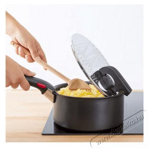 Ha tetszenek a Tefal egyedi Ingenio termékei, akkor minden bizonnyal szeretni fogod a Tefal Ingenio indukciós fedőt is, mely konyhád hasznos kiegészítője lehet. A fedél egy eredeti fogantyúval rendelkezik, mely kényelmes fogást biztosít, és amelynek használata még forró víz esetében is biztonságos és kényelmes. A fedőn található nyílások, úgy vannak kialakítva, hogy a fedő bármilyen étel készítésekor használható legyen.
