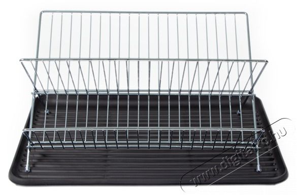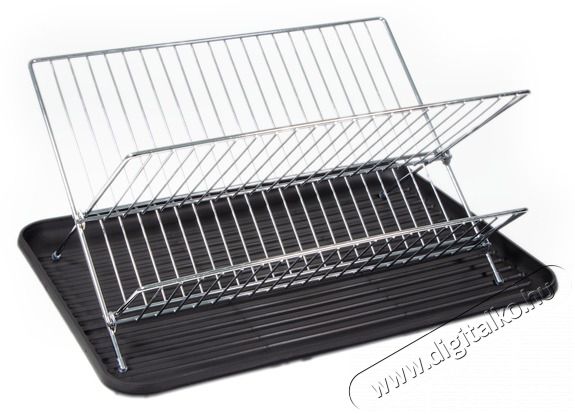 2 szint a tányérokhoz, poharakhoz, csészékhez és tálakhoz. Összecsukható kialakítás, ezáltal a használaton kívül összecsukva minimális helyen tárolható. Csúszásmentes csepegtető tálcával. A tartó rozsdamentes acél, tartós kivitel.