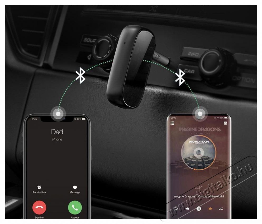 Bluetooth adapter otthonra és az autóba. Csatlakoztasd a telefonodat az Ugreen Bluetooth adapter segítségével, és élvezd a kiváló sztereó hangzást. Az adapterhez két eszközt lehet egyszerre csatlakoztatni, így egyetlen fontos bejövő hívásról sem maradsz le. A 3,5 mm-es jack-csatlakozónak köszönhetően kiváló minőségben streameli a zenét az autórádióba.