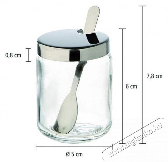 - Átlátszó üvegből készült, rozsdamentes acél fedővel