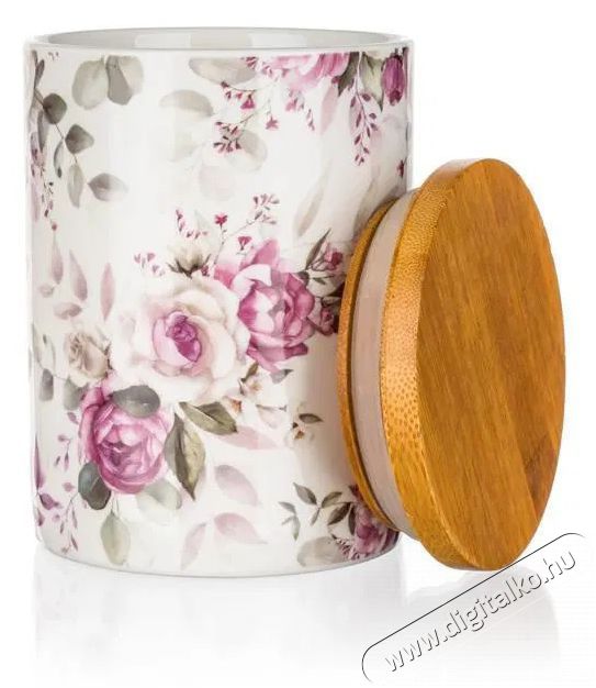 Tárolóedény - kerámia, kerek, ráhelyezhető fedél, fedél anyaga fa, űrtartalma 1,1 l, magassága 10 cm mérete 10 × 13 cm (magasság × átmérő), a csomag része 2 tárolóedény, fedél